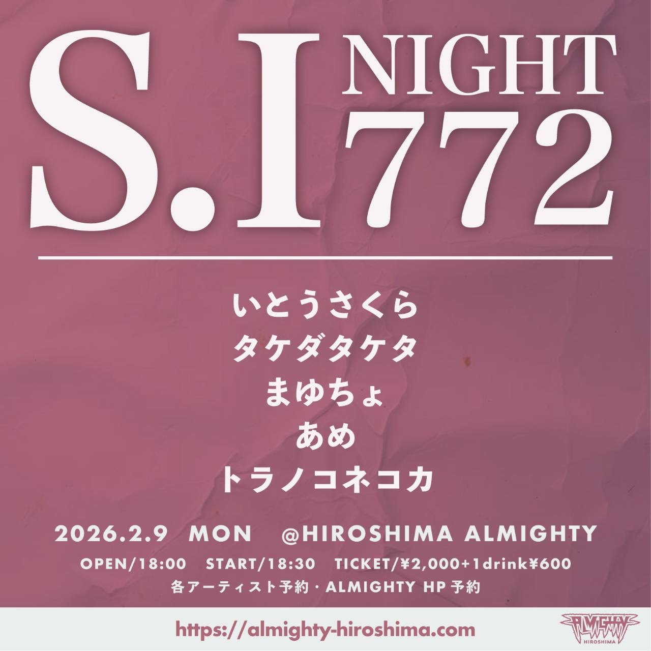 Ticket¥2000+1drink¥600ALMIGHTY ↓